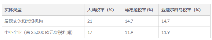 亚速尔群岛:税率较低,分别为16%、9%和4%。年收入低于10,000欧元的企业免征增值税。