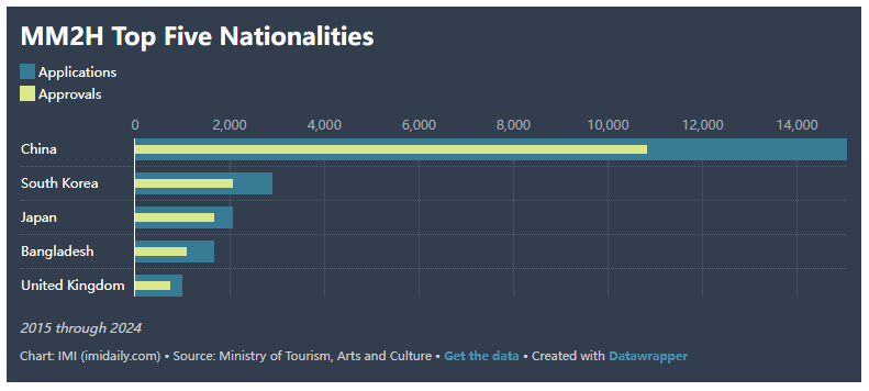 “我的第二家园”(MM2H)计划在2015年至2024年间处理了30303份申请,批准了22282名希望在这个东南亚国家建立家园的外国公民。
